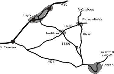 The most direct route to us from Exeter is the A30 road via Okehampton to Hayle. At Hayle take the B3302 road for Helston, through the village of Leedstown. Go straight over two little X roads, and our farm entrance is the first on the left.